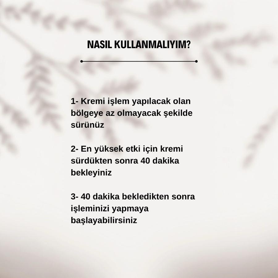 Kullanımı oldukça basittir. Temizlenmiş ve kurulanmış cilde az olmayacak şeklide krem sürülmeli ve 20 dakika beklenmelidir. Ardından işlem başlayabilir.