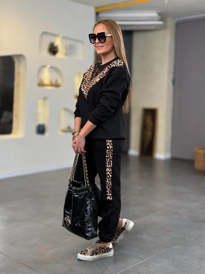 Leopar Desenli Kumaş Dantelli İkili Takım, stilinizle ifade etmek istediğiniz her şeyi yansıtmak için mükemmel bir seçimdir. Hem şık hem de rahat yapısıyla; dolabınızda vazgeçilmez bir parça haline gelecek. Modanın dinamiklerine uygun tasarımı sayesinde, her mevsim şıklığınızı koruyacak. Kendinizi özel hissetmek için bu takımı tercih edin ve tarzınızı bir üst seviyeye taşıyın!
