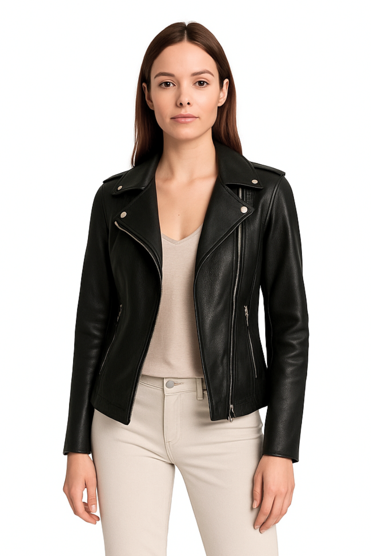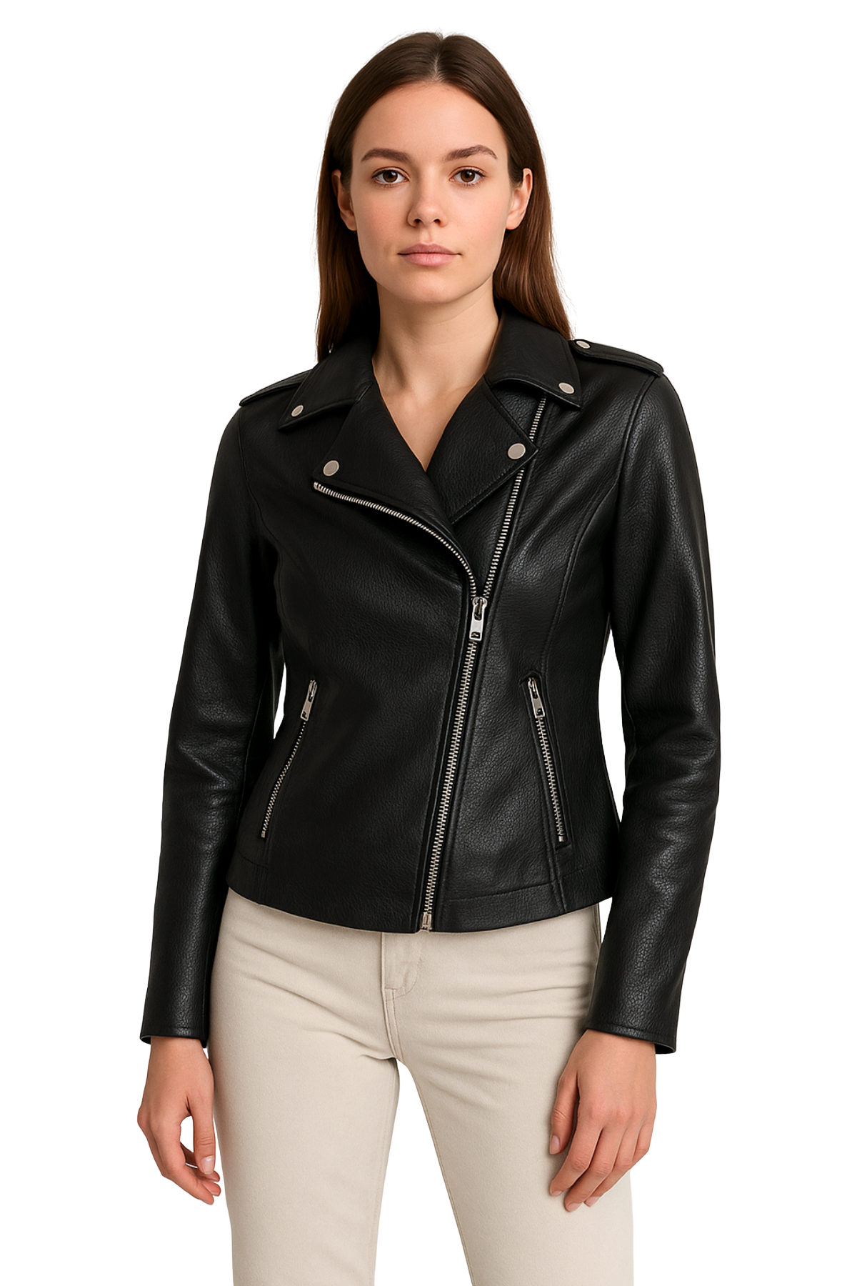 Metal fermuar detayları, asimetrik ön kapama ve fe kol fermuarlarıyla fonksiyonellik ve stil bir arada sunuluyor. Omuzlardaki apoletler, klasik biker çizgilerini çağdaş bir yorumla yeniden tanımlıyor. Minimal dikiş işçiliği ise Derije kalitesini gözler önüne seriyor. İç astarı sayesinde konforlu kullanım sunan bu ceket, hem sokak stilinizin hem de şık kombinlerinizin vazgeçilmezi olacak.
